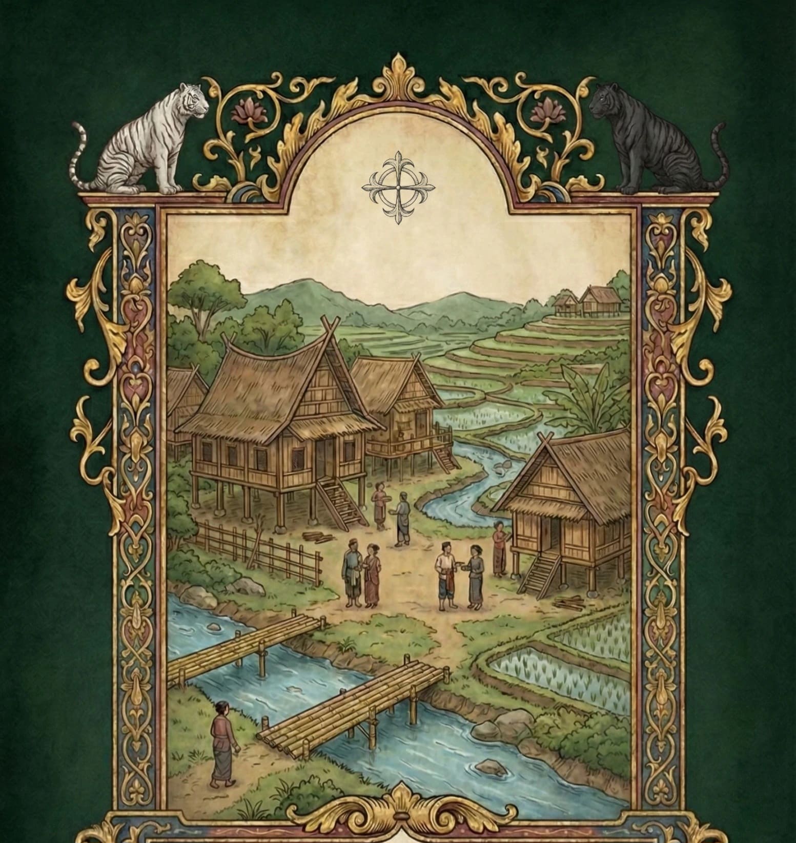Tak hanya rumah, tata kota Pakuan Pajajaran pun cerdas. Mereka menerapkan *Sistem Parit Multiguna yang tak hanya mengairi sawah tetapi juga mengendalikan air hujan, menjadi batas wilayah, dan bahkan elemen pertahanan. Selain itu ada *Hutan Samida, kawasan hutan yang dilindungi atau dikeramatkan, berfungsi sebagai daerah resapan air raksasa, penstabil tanah, dan penjaga keanekaragaman hayati—pencegah erosi dan longsor alami. Bahkan *Ngabalay Jalan, jalur penghubung kota, dirancang ramah lingkungan, menciptakan koridor hijau yang menjaga keseimbangan alam. Ini semua merupakan bentuk “smart city” versi kuno, di mana harmoni alam adalah fondasi utamanya.